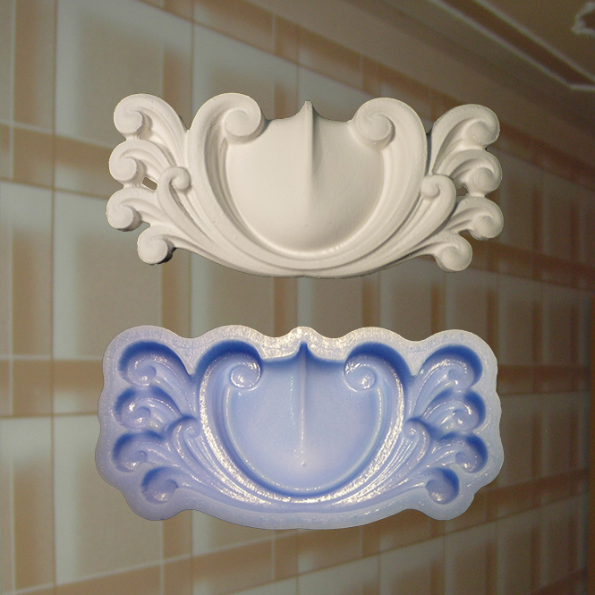Dieses dekorative Ornament zeigt eine stilisierte Muschelform, eingefasst von sanft geschwungenen Voluten. Die ausgewogene Symmetrie und die ruhige Linienführung verleihen dem Motiv eine zeitlose, elegante Wirkung. Die Form erinnert an klassische Stuckverzierungen aus barocken und klassizistischen Interieurs und eignet sich hervorragend zur Veredelung von Möbeln, Wandflächen, Rahmen oder dekorativen Objekten. Ideal für Gussarbeiten, Restaurationsprojekte oder kreative Dekorationen mit klassischem Charakter.