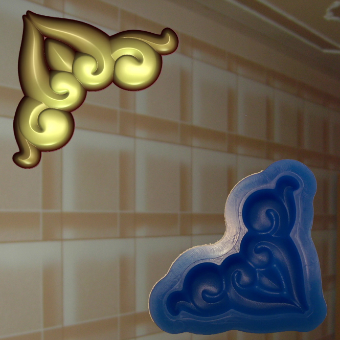 Die Negativform eignet sich ideal für feine Eckverzierungen, kleine Rahmen, Möbeldetails oder dezente Akzente in kunsthandwerklichen Projekten. Das gegossene Ornament fügt sich unaufdringlich ein und verleiht dem Ganzen Ruhe und Vollständigkeit.