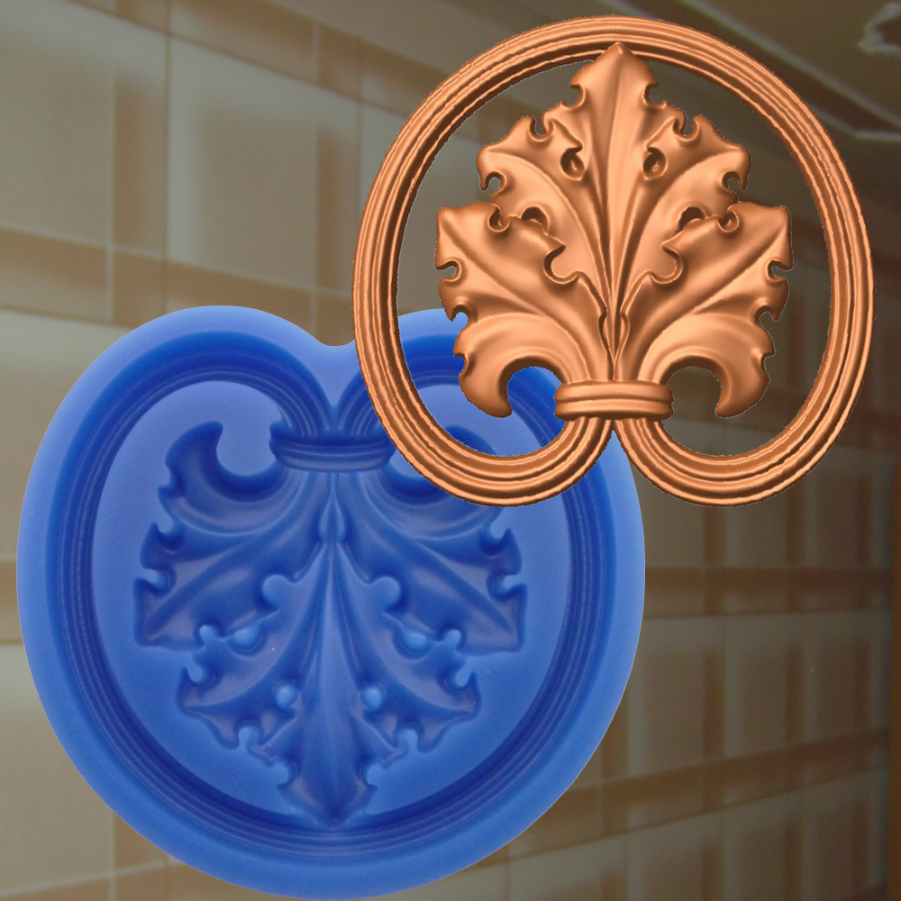 Diese Silikonform für ein rundes Barockornament zeigt ein zentrales Akanthusblatt, eingefasst von einer harmonischen, kreisförmigen Umrandung. Das Design ist an klassische Stuckverzierungen angelehnt und wirkt ausgewogen, edel und zeitlos.