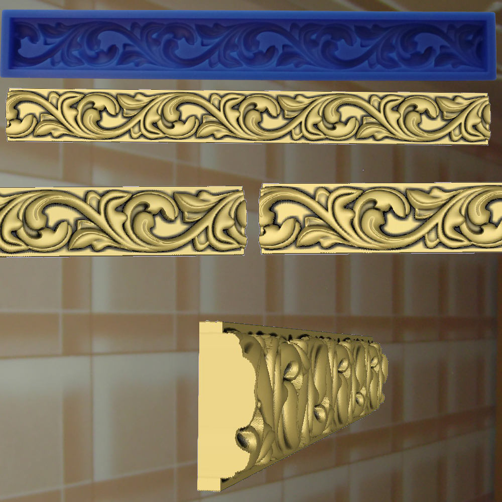 Diese Silikonform dient zur Herstellung eines klassischen Zierprofils mit durchgehendem Rankenornament und fließendem Linienverlauf. Die Negativform ermöglicht eine präzise Abformung der fein ausgearbeiteten Rankenstrukturen sowie sauber definierte Konturen.